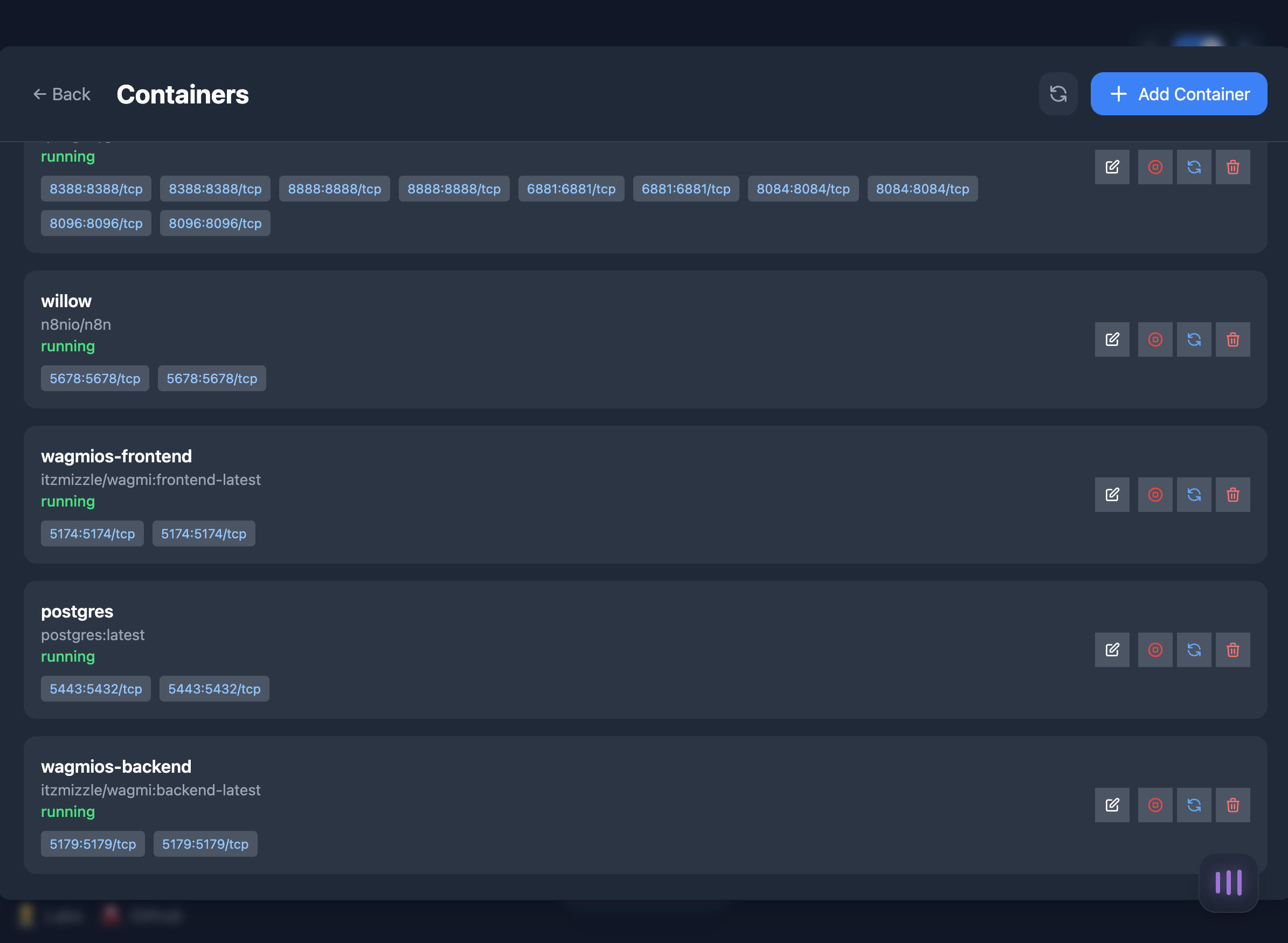 wagmi is a self-hosted container management system.